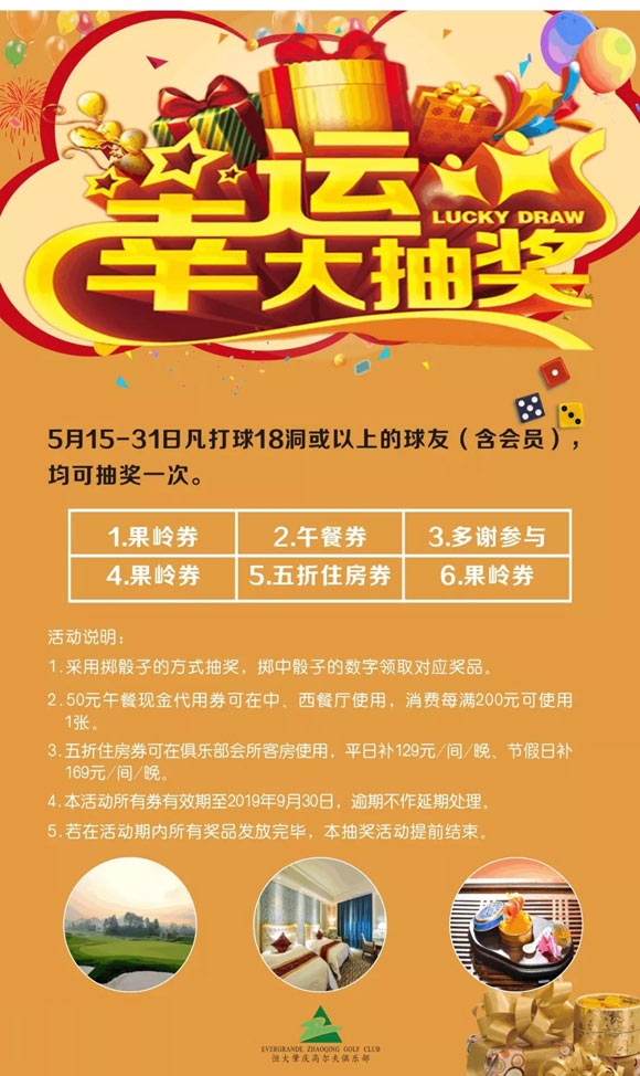 幸运大抽奖!恒大肇庆高尔夫俱乐部