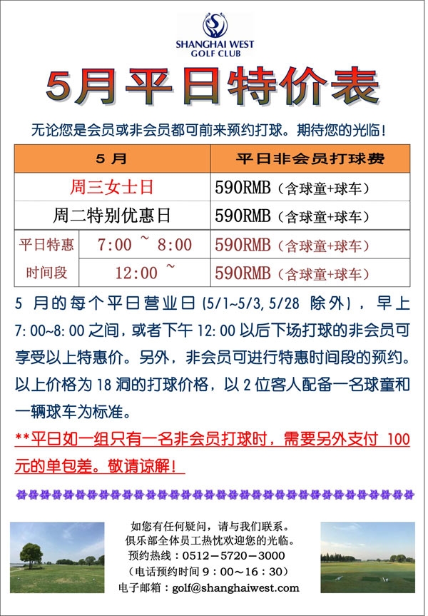 俱乐部5月平日指定时间特惠: