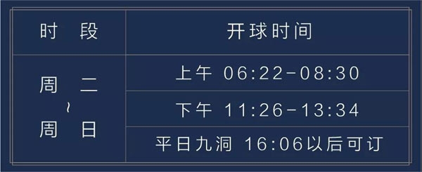 ·平假日均为双Tee开球,八分钟一组;