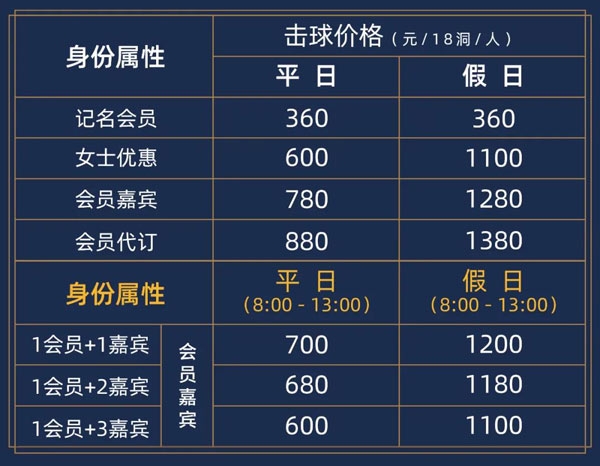 ·以上价格含击球果岭费、球僮费、球车费及设施费,不含球僮小费;