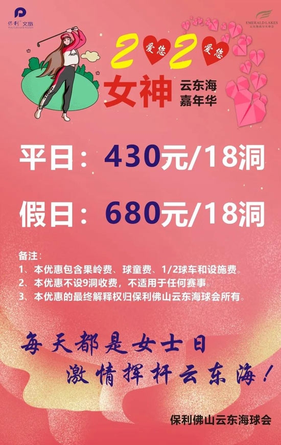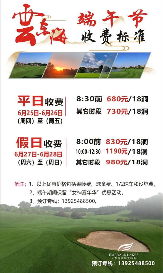680元/18洞!保利佛山云东海球会端午节期间收费标准