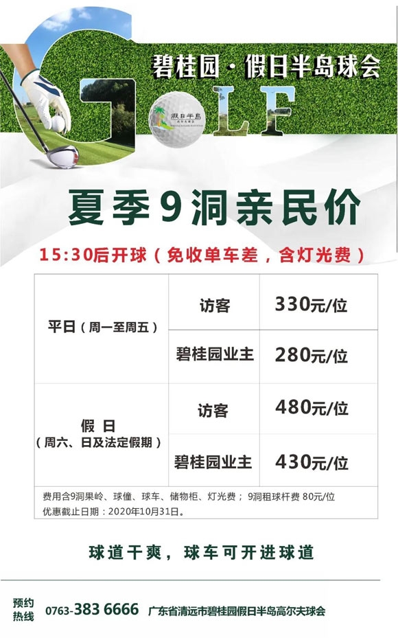 330元/位!碧桂园假日半岛球会夏季9洞高尔夫亲民上线