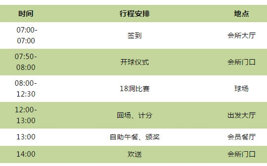 注:以上费用包含比赛击球费、自助午餐、签到伴手礼、幸运抽奖