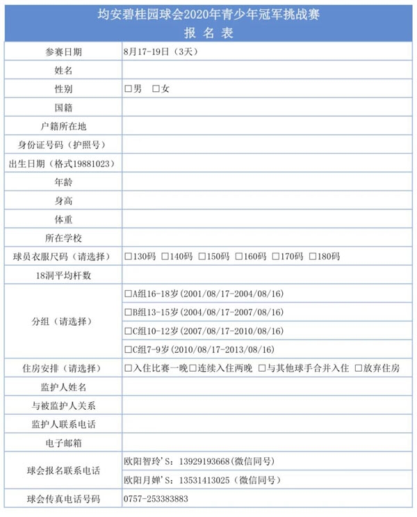 7、费用说明:参赛选手参赛费、差旅费、食宿费、球童小费等自理。