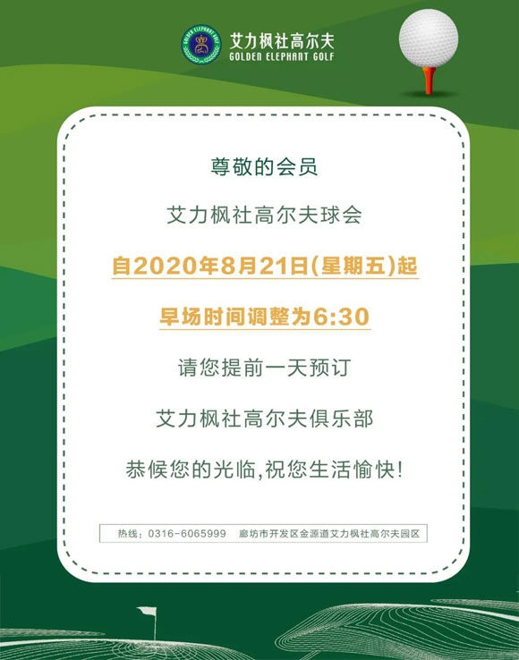 河北廊坊艾力枫社高尔夫关于营业时间调整通知