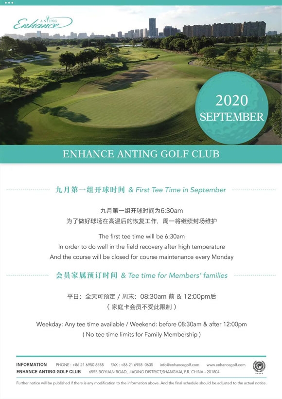 颖奕安亭高尔夫俱乐部九月开球时间: