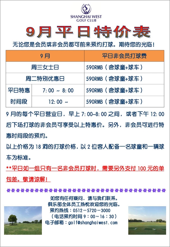 590元!上海光明高尔夫9月平日指定时间特惠