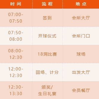 注:以上费用包含18洞击球费、午宴、签到伴手礼、幸运抽奖