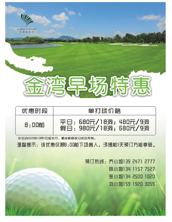 【温馨提示】金湾高尔夫早场特惠!