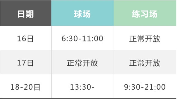 南昌保利高尔夫俱乐部于10月16日-20日举办“广汽Honda | 南昌 公开赛”,赛事期间俱乐部开放时间如下: