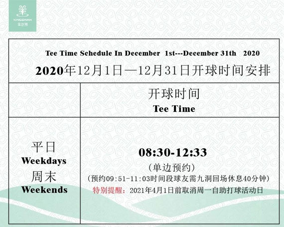 您好,金沙湾乡村俱乐部12月开球时间安排如下: