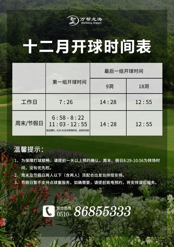 江阴万帮龙涛国际乡村俱乐部十二月开球时间表