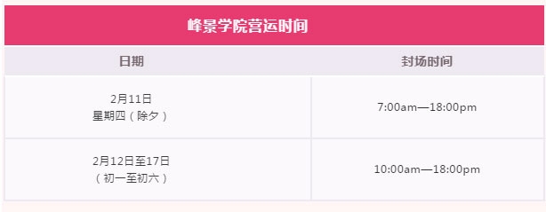 2021年东莞峰景高尔夫球会春节假期营运时间
