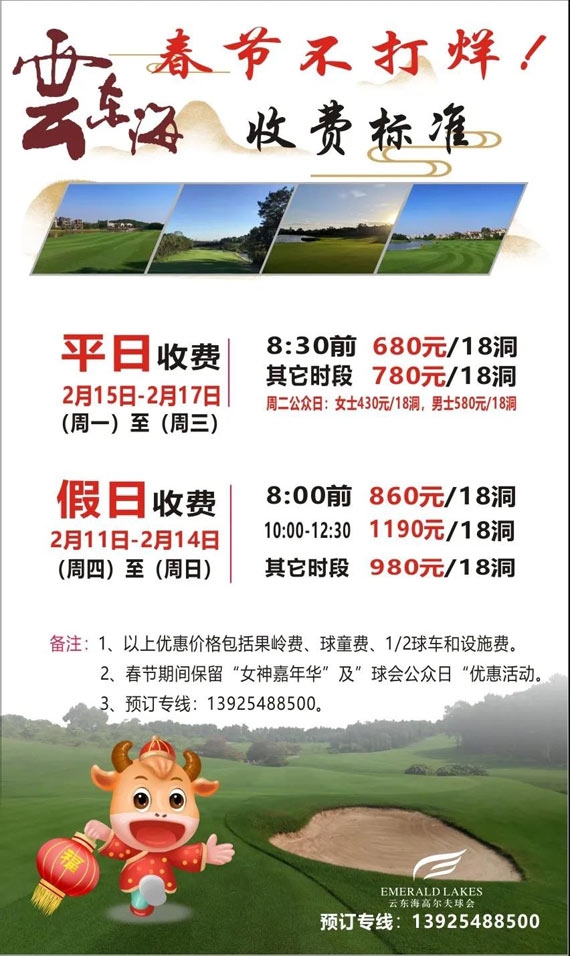 【春节不打烊】佛山保利云东海球会春节收费标准