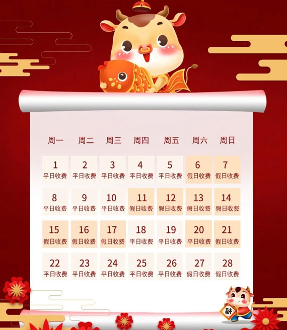 “春节收费标准公告”