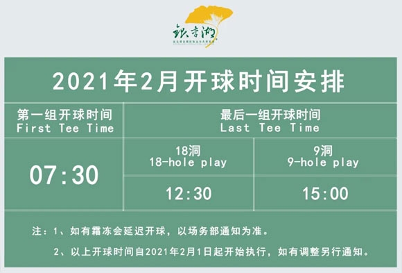 “二月Tee-time时间安排”