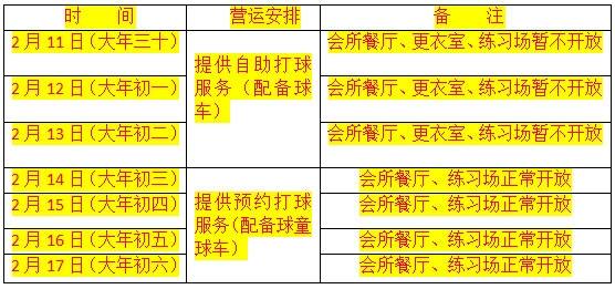 为了给您带来一个健康、安全的户外运动休闲胜地,春节期间球会打球服务不停歇,为使您更好的安排打球时间,现向您告知庐山国际高尔夫球会春节期间运营时间安排: