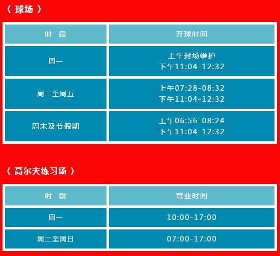 ■ 开球时间:平假日均是8分钟一组双边开球。