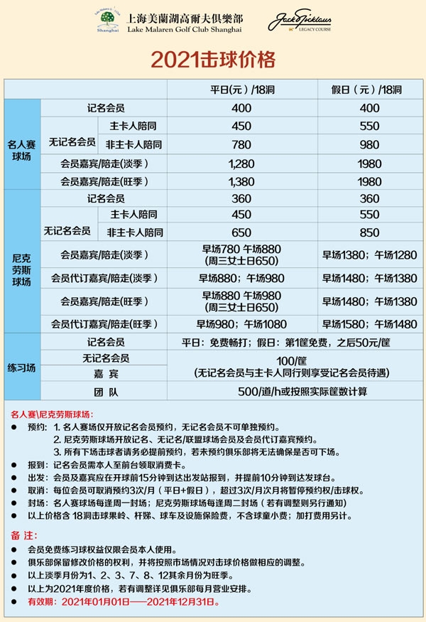 对于部分会员提出的宝贵意见以及为了不断提升俱乐部草坪品质和营运服务品质,俱乐部将于2021年03月01日年起,开始执行新的击球价格,本次击球价格的调整,主要包含以下几个方面: