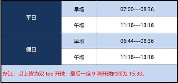 上海美兰湖高尔夫3月份营业安排
