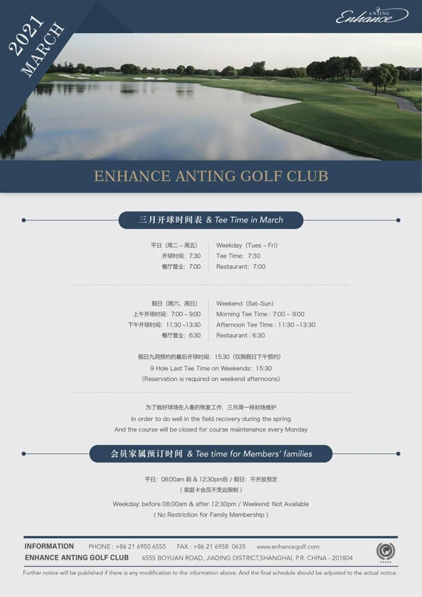 上海颖奕安亭高尔夫俱乐部三月开球时间
