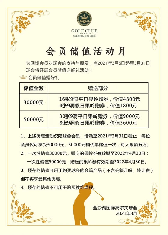 阳春三月好时节,河南金沙湖高尔夫会员储值优惠开启