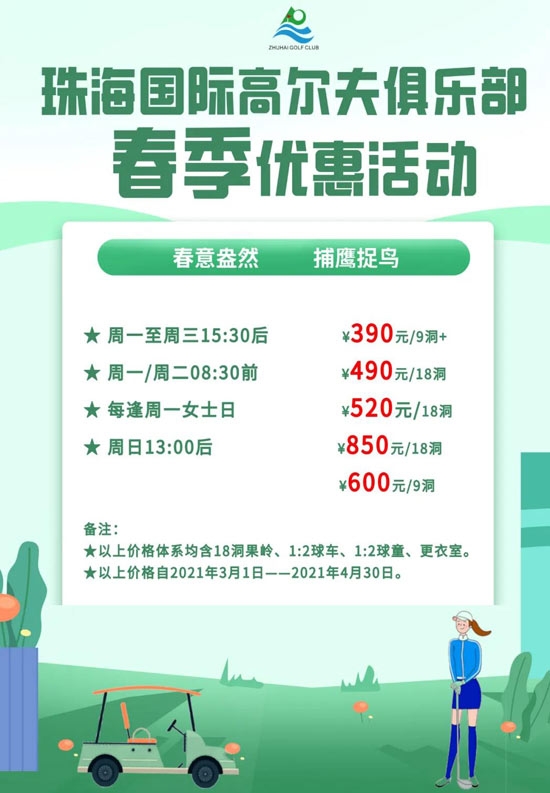 珠海国际高尔夫俱乐部优惠活动大放送: