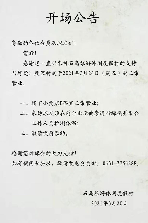 威海荣成石岛高尔夫开场公告