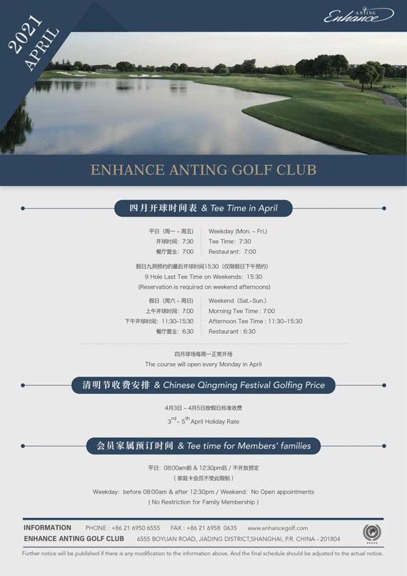 上海颖奕安亭高尔夫四月开球时间&清明节收费安排