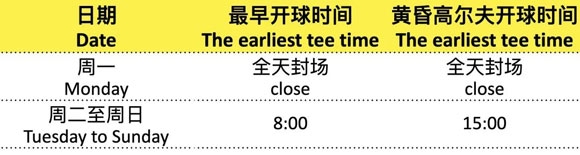 北京丽宫体育公园最早及黄昏高尔夫开球时间调整