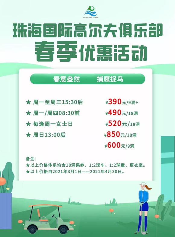 珠海国际高尔夫俱乐部4月开球时间及清明节安排