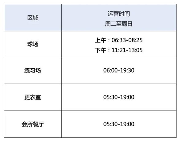 上海旗忠高尔夫4月营运时间安排
