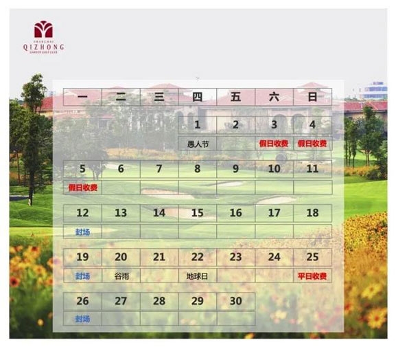 现将上海旗忠花园高尔夫俱乐部4月运营时间安排如下: