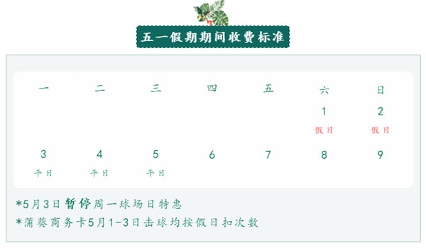 江门五邑蒲葵高尔夫球会五一假期收费公告