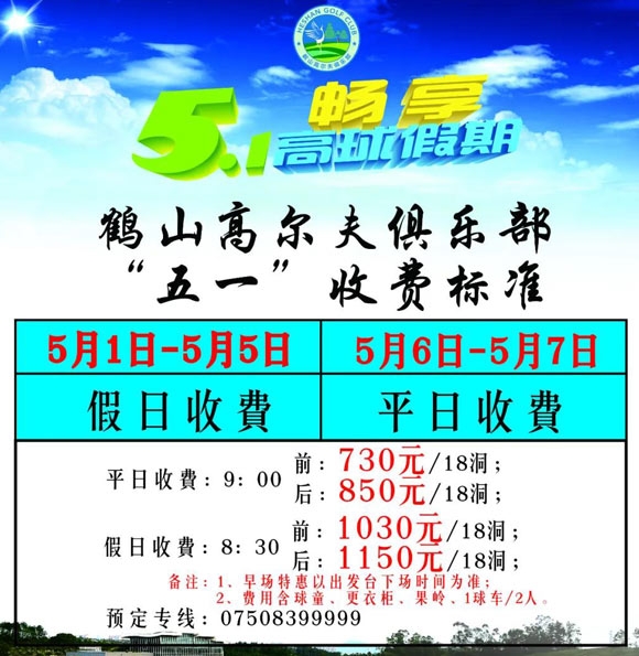 2021鹤山高尔夫俱乐部“五一”劳动节期间收费标准如下: