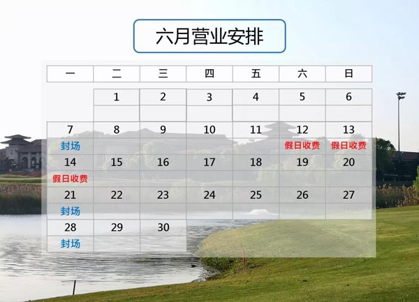 现将上海旗忠花园高尔夫俱乐部六月运营时间安排公告如下,敬请留意!