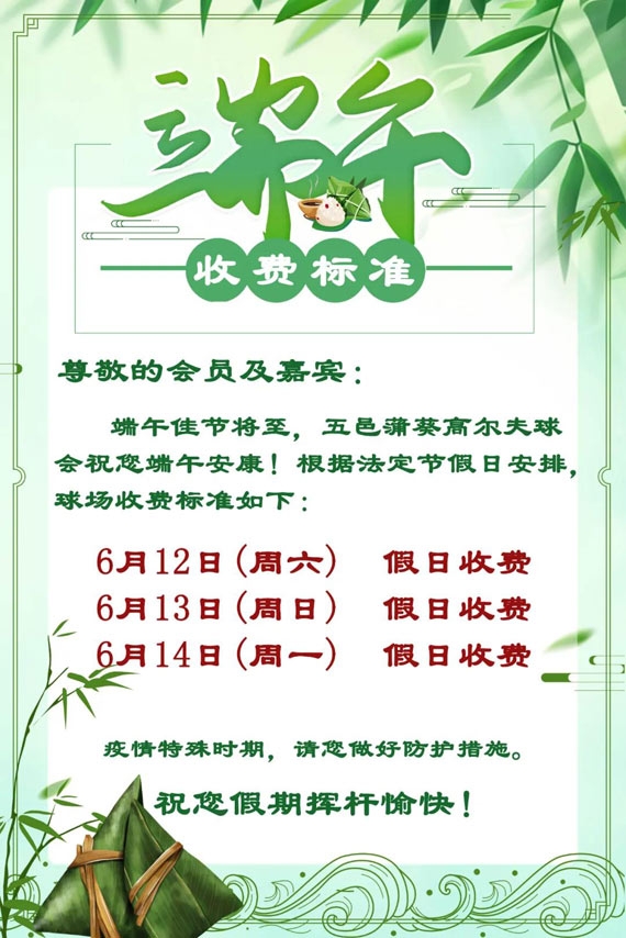 江门五邑蒲葵高尔夫球会端午假期收费公告