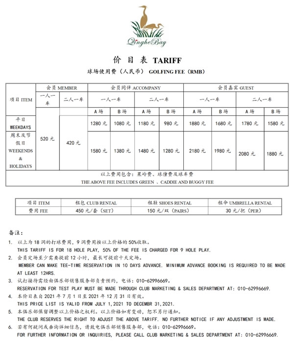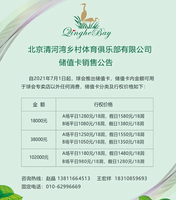 北京清河湾高尔夫推出储值卡及最新价目表