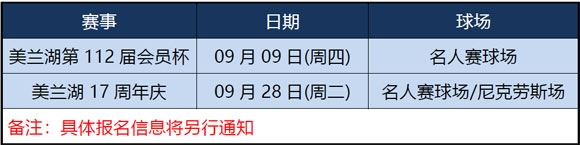 上海美兰湖高尔夫俱乐部9月份营业安排