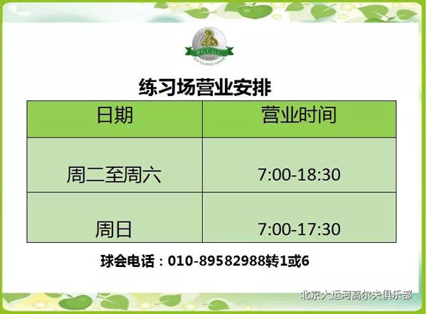 北京大运河高尔夫俱乐部秋季营业时间调整通知