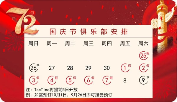 上海天马乡村俱乐部10月击球时间及国庆假期安排