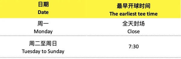 秋高气爽,昼短夜长,为了让您和您的嘉宾能够更好地体验清晨时段的击球乐趣,自9月27日起,丽宫体育公园最早开球时间调整如下: