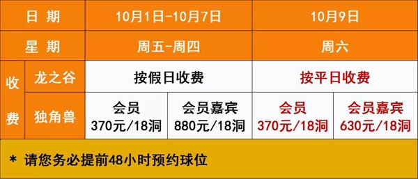 为避免错失您的开球时间,敬请您和同组嘉宾至少提前48小时预约并准时到场,感谢配合!