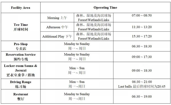 自2021年10月11日(星期一)起,俱乐部最早的开球时间将调整为上午07:00,调整后的开球时间如下: