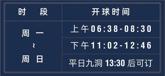 平假日均为双Tee开球,八分钟一组;
