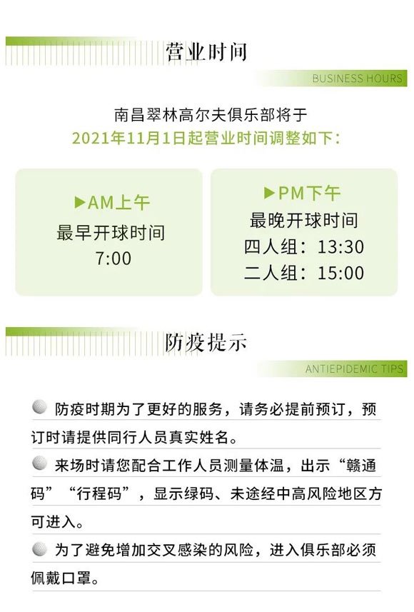 十一月球场营业信息公示‖南昌翠林高尔夫俱乐部公告!