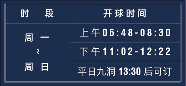 平假日均为双Tee开球,八分钟一组;