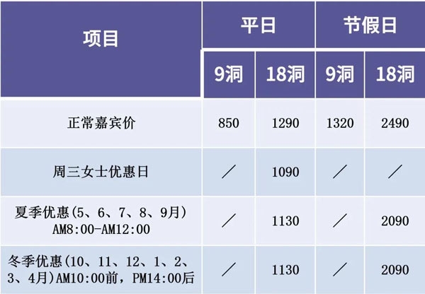 自2022年1月1日起,长安高尔夫球会对嘉宾打球費用將作如下调整: