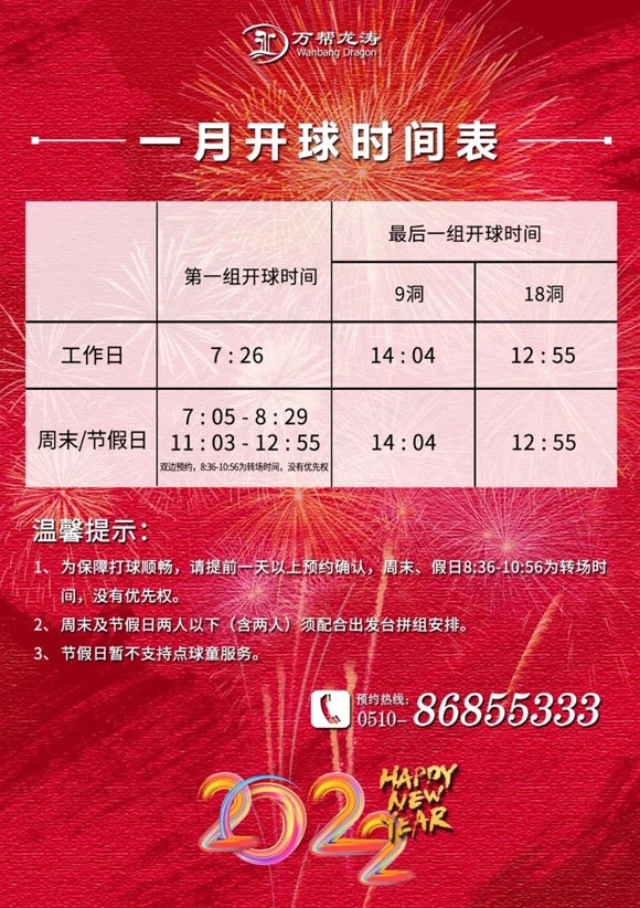 2022万帮龙涛元旦假期收费标准&一月开球时间