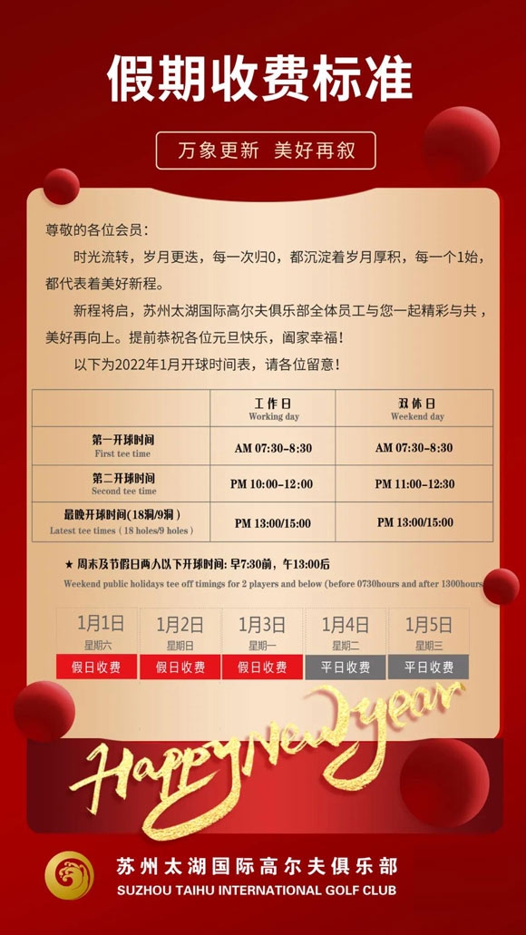 苏州太湖国际高尔夫俱乐部一月开球时间表